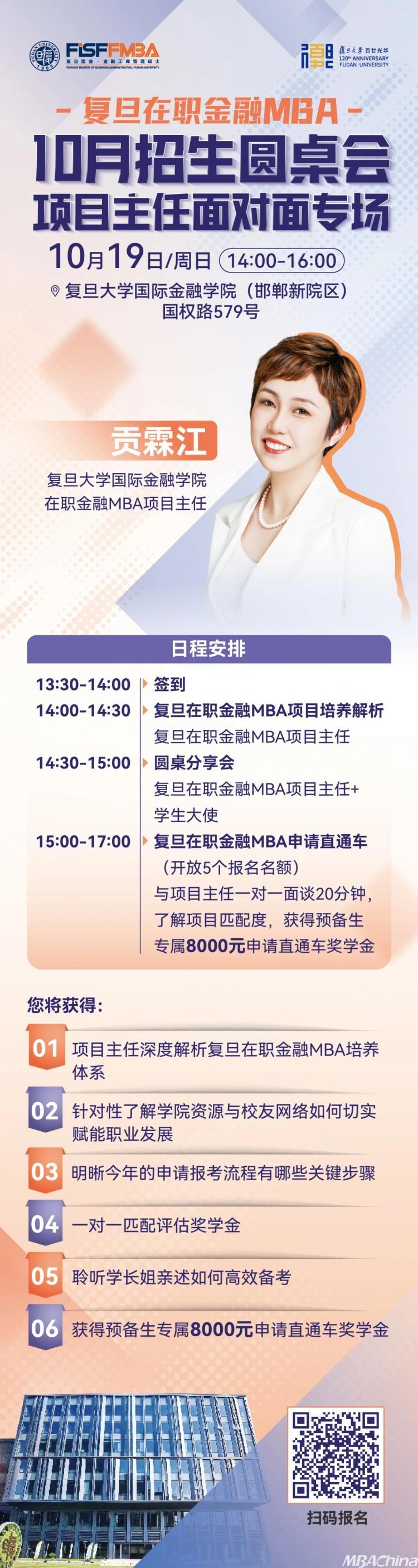 - 10/19 【活動報名】復旦在職金融MBA 項目主任面對面專場來了!丨FMBA