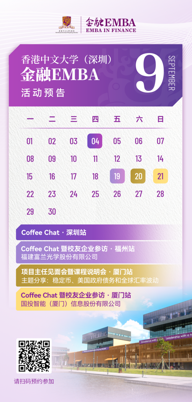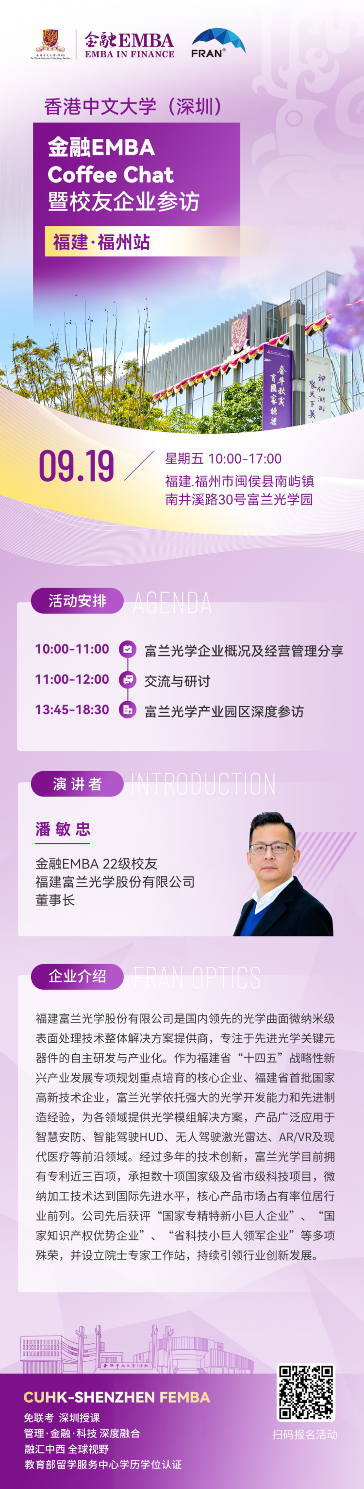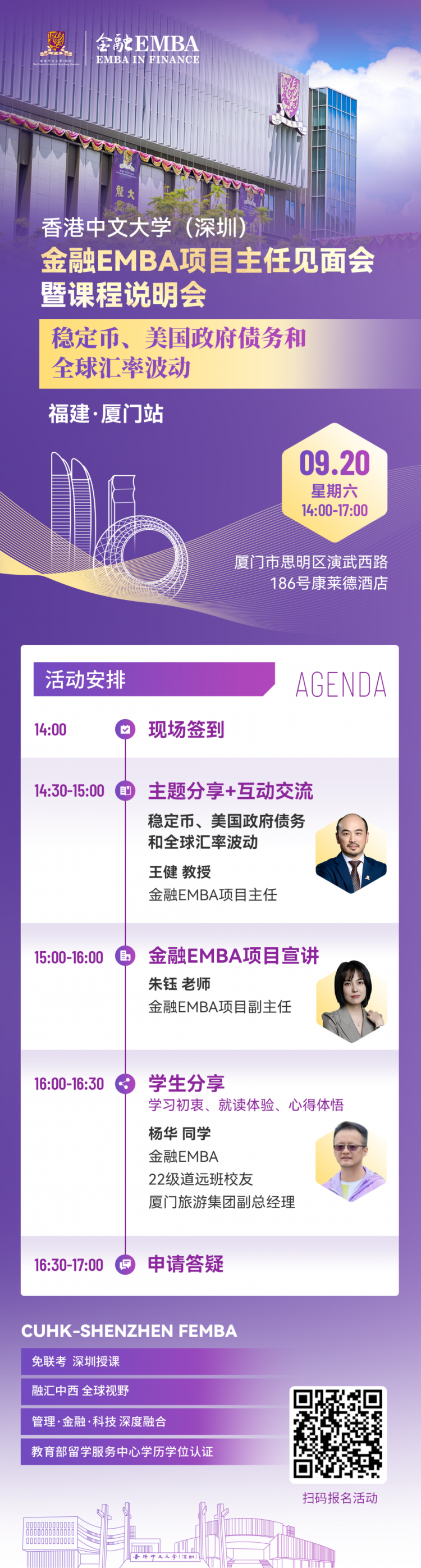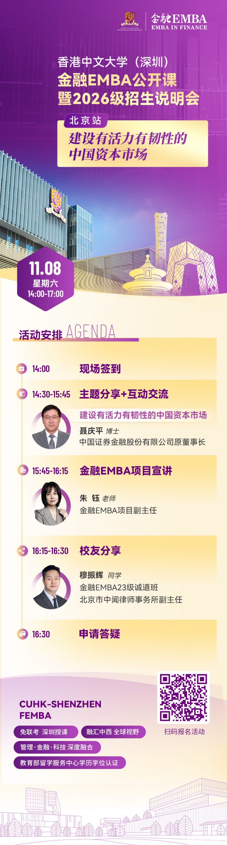 活動(dong)亮點?獲取前沿經濟趨勢分(fen)析與戰(zhan)(zhan)略洞見? 了解金融(rong)EMBA項目特(te)色(se)與培養體系? 聆聽優秀校(xiao)友實戰(zhan)(zhan)經...