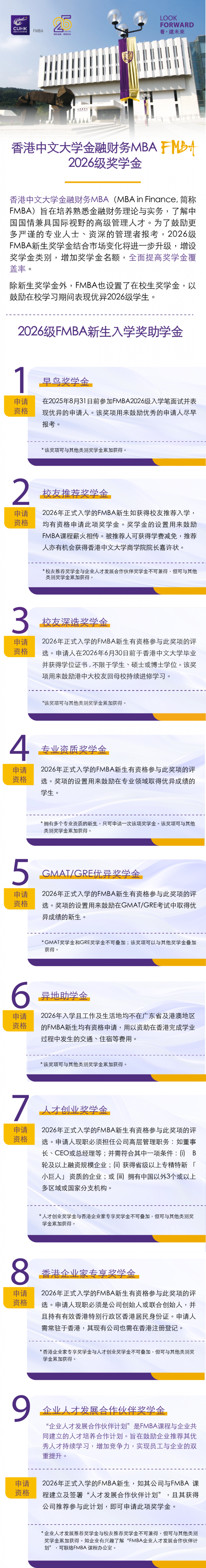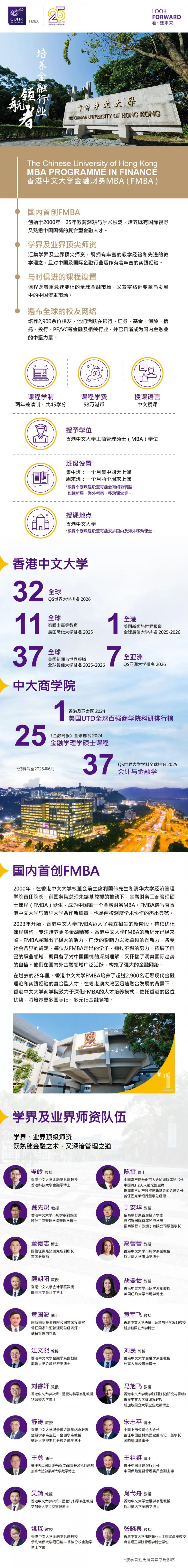 香港中文大學金融財務MBA(FMBA) 2026級聯考報名(ming)