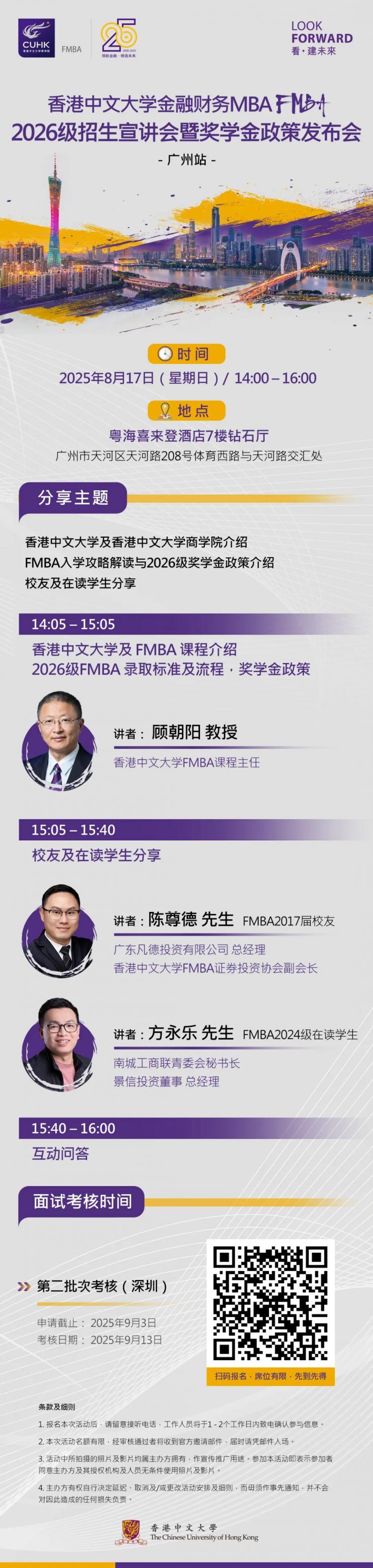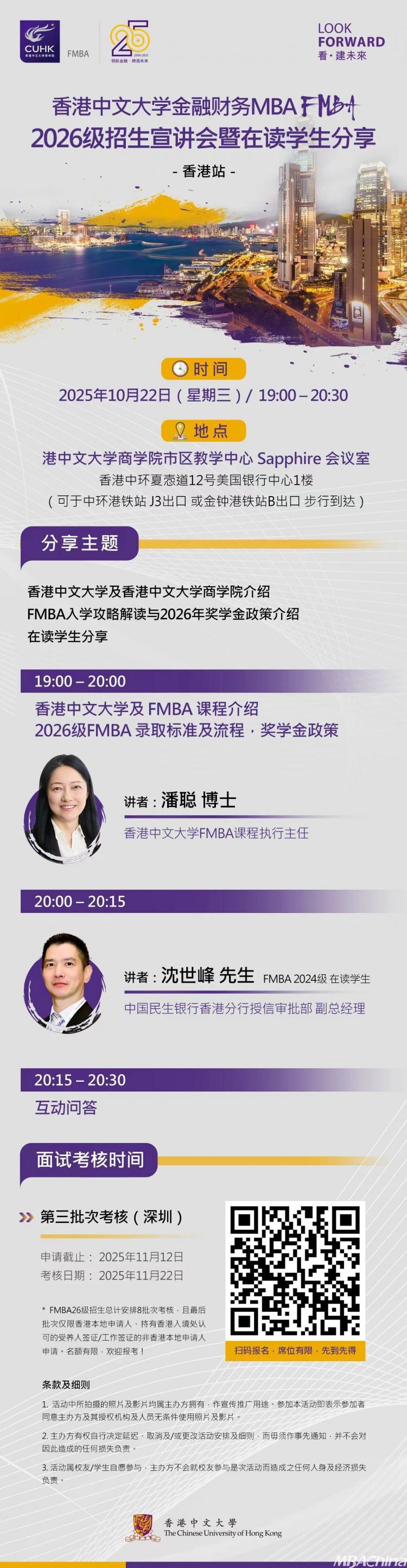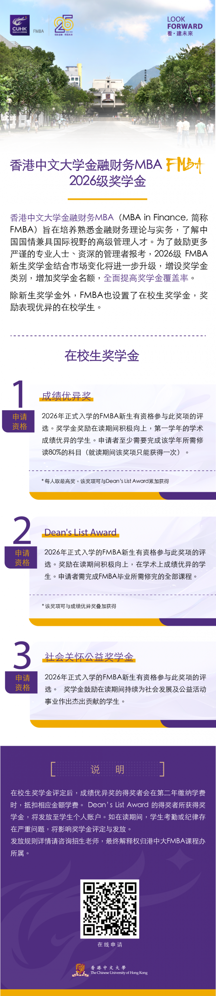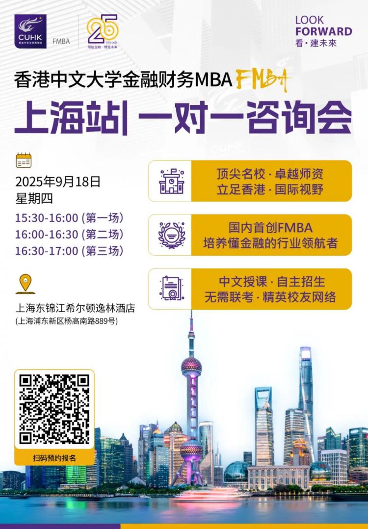 香港中文大學(xue)(xue)FMBA2026級招生(sheng)全面啟動!想(xiang)快速了解課程特色、課程學(xue)(xue)習(xi)、申請流程?我們為(wei)您整理(li)了關...