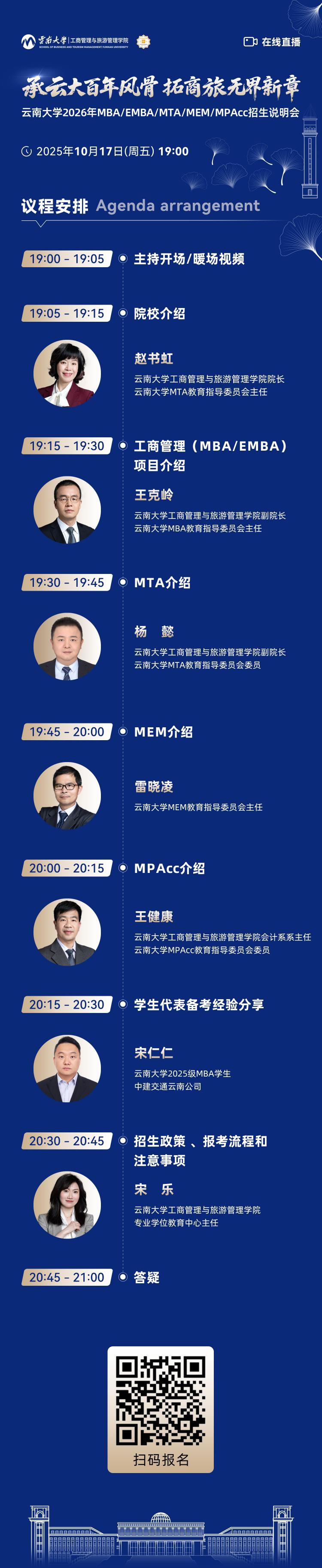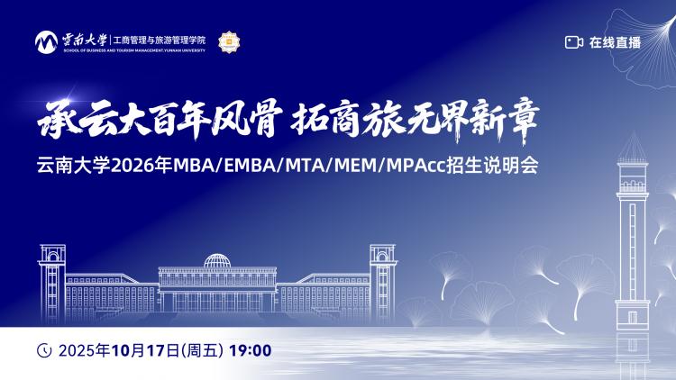云南(nan)大(da)學2026年(nian)MBA/EMBA/MTA/MEM/MPAcc 線上招生說明會(hui)