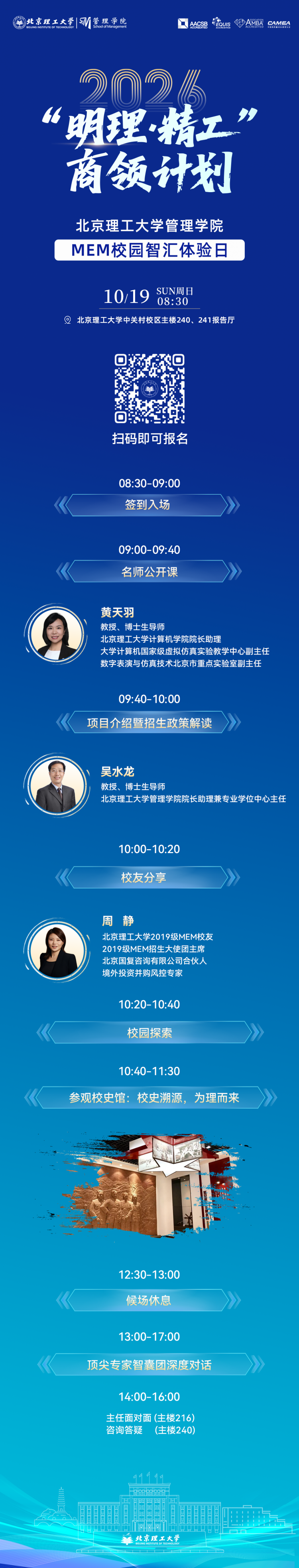 “明理·精(jing)工(gong)”商領計劃(hua)——北京(jing)理工(gong)大(da)學管理學院MEM校園智匯體驗日(ri)